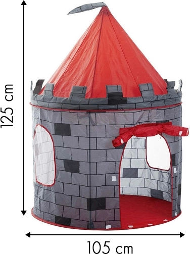 Bērnu rotaļu telts bruņinieku pils stilā veicina iztēli un patstāvīgas rotaļas. Pateicoties ritināmajai ieejai, bērni var izveidot savu slepeno patvērumu, bet divi sietveida logi nodrošina gaisa cirkulāciju un pārskatu par notiekošo ārpusē. Ideāli bruņinieku cīņām, lasīšanai un mierīgai atpūtai.