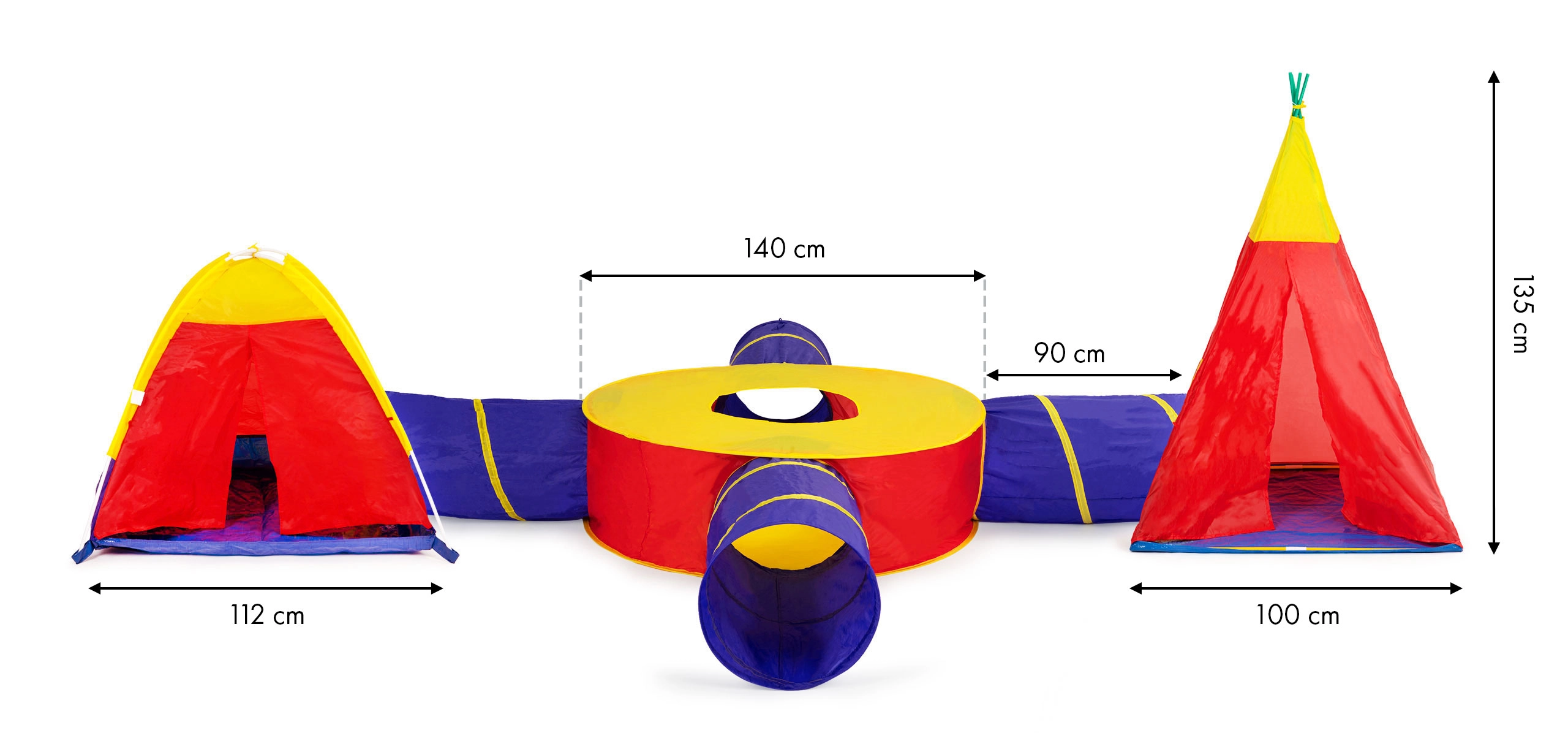 Pašizplešamie tuneļi un centrs paātrina sagatavošanu. Telšu plastmasas rāmis saglabā formu un ir stabils pat intensīvas rotaļas laikā.