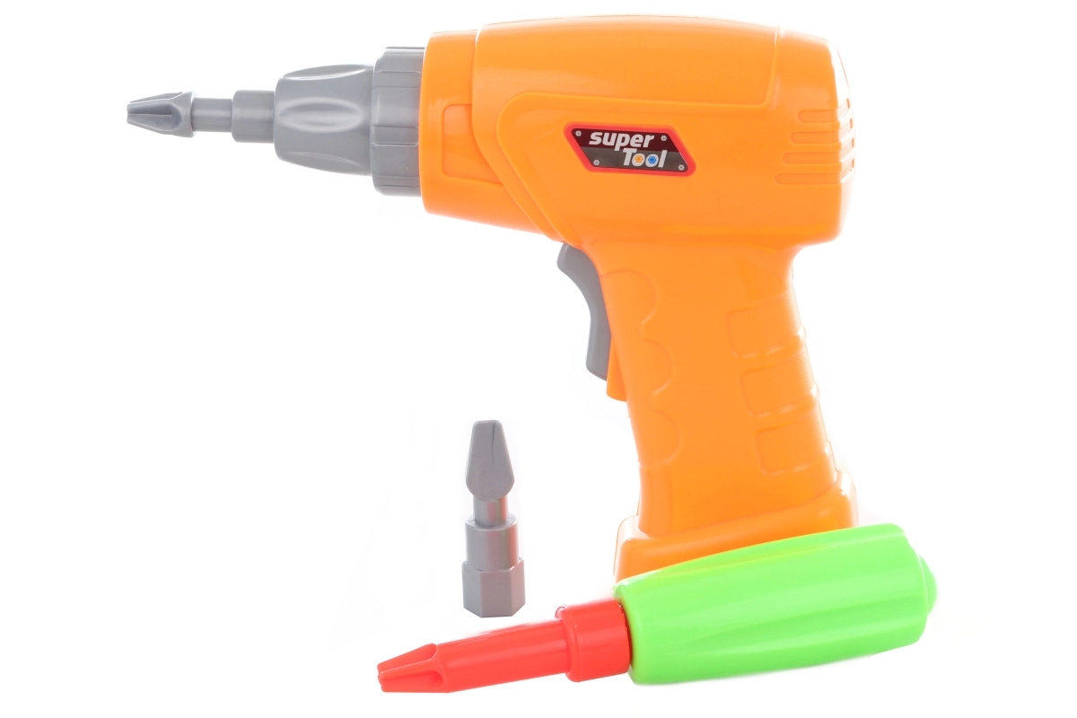 Dinamiski skrūvēšanas uzdevumi ar oranžu urbi un maināmiem bitiem attīsta koordināciju un stiprina pirkstus. Barošana ar 2× AA baterijām (nav iekļautas).