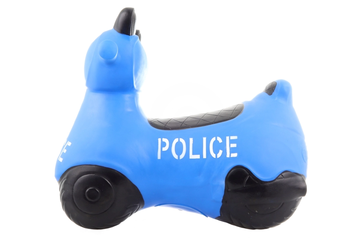 Izklaidējoša gumijas lēkājamā rotaļlieta motocikla formā ar policijas motīvu bērniem no 1 gada vecuma. Veicina līdzsvara attīstību, rupjo motoriku un koordināciju, ir stabila, izturīga un viegli kopjama. Iepakojumā iekļauta pumpīte ātrai piepumpēšanai.