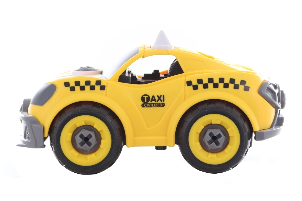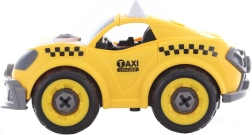 Uzbūvē, pieskrūvē un brauc! Šis radošais komplekts apvieno skrūvējamu dzeltena taksometra modeli ar iespēju pārvērst to par tālvadāmu auto. Vispirms bērni paši saliek auto, izmantojot skrūvgriezi vai urbjmašīnu, pēc tam izņem motoru no urbjmašīnas, ievieto to auto un izbauda vienkāršu vadību uz priekšu un atpakaļ.