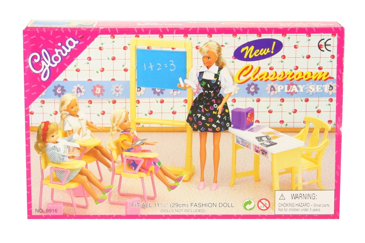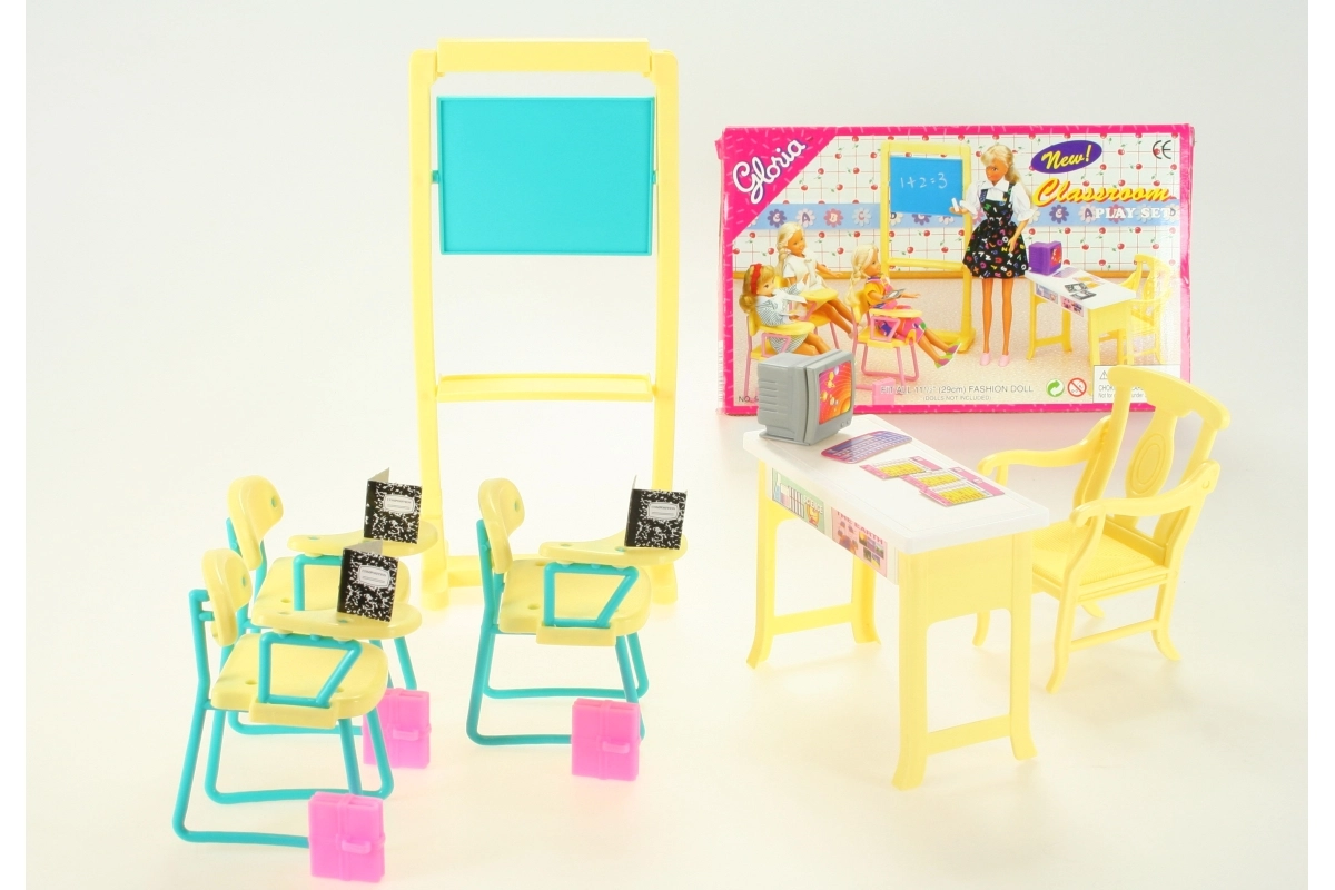 Ar Glorie skolas klases komplektu jebkuru bērnistabu var pārvērst nelielā mācību telpā. Bērni var spēlēt skolotāju un skolēnus, rakstīt uz tāfeles, labot testus un gatavoties skolai. Bagātīgais piederumu klāsts nodrošina ilgas izklaides stundas un sociālo prasmju attīstību.