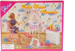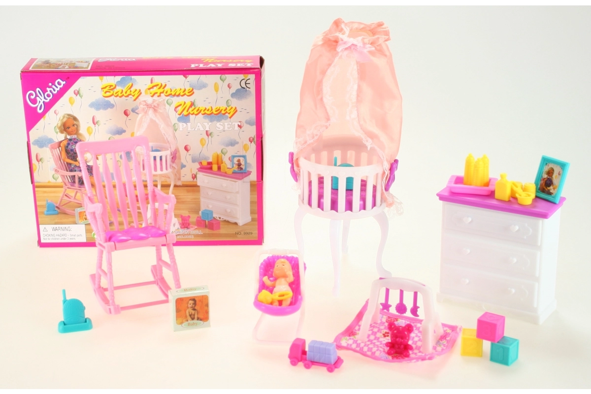 Pilns zīdaiņa komplekts no zīmola Glorie piedāvā visu, kas nepieciešams bērnu istabiņai leļļu spēlēm. Komplektā atradīsiet kumodi ar atvilktni, gultiņu ar baldahīnu, šūpuļkrēslu, atpūtas krēsliņu, piederumus zīdaiņa aprūpei un pašu zīdaini. Ideāli bērniem no 3 gadu vecuma fantāzijas un aprūpes prasmju attīstīšanai.