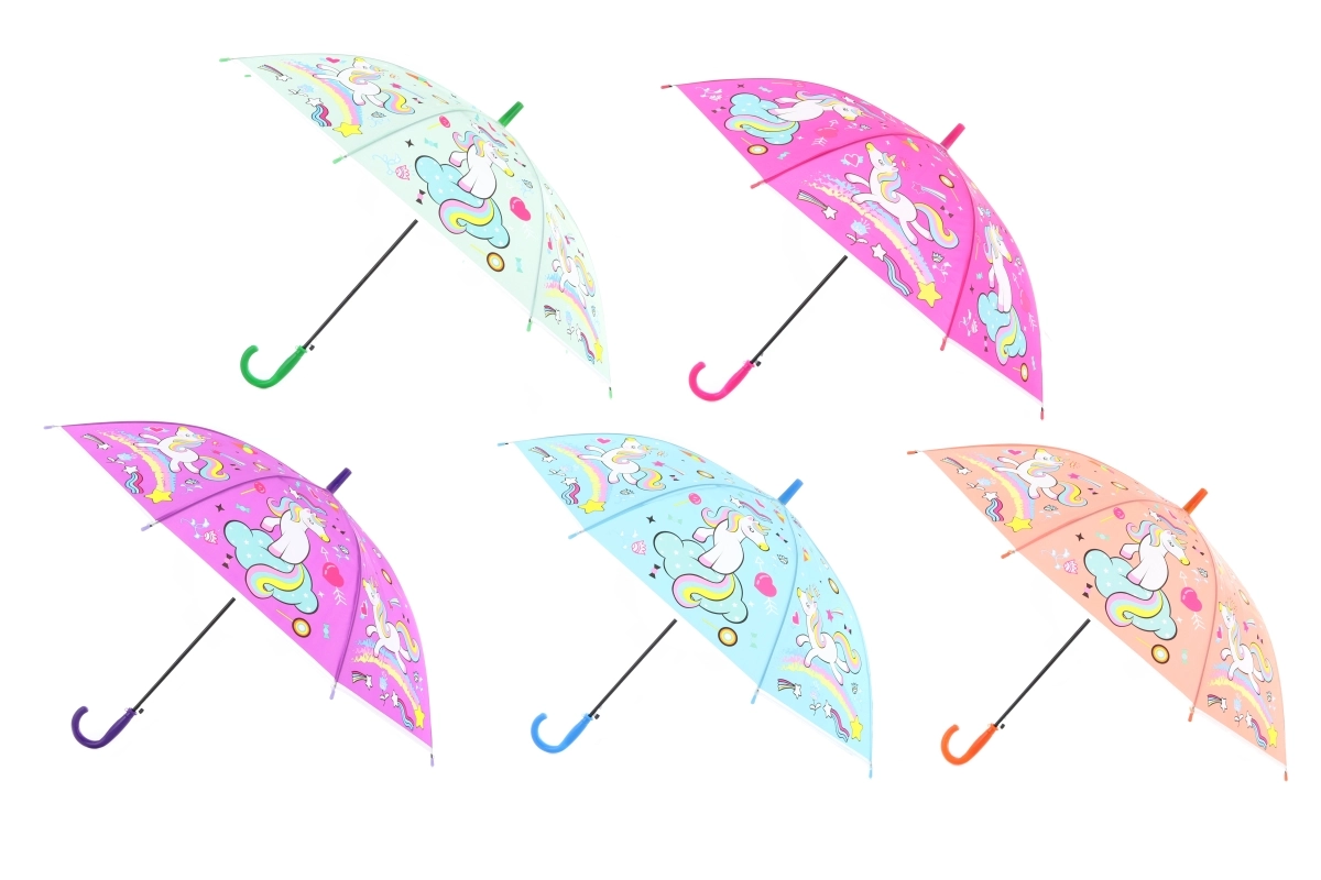 Mīlīgs bērnu automātiskais lietussargs ar vienradžu motīvu iepriecinās gan mazākus, gan lielākus bērnus. Tas piedāvā stingru tērauda konstrukciju, ērtu plastmasas rokturi un vienkāršu aizvēršanu ar siksniņu ar spiedpogu. Lieliski pasargā no lietus un ar jautro dizainu padarīs gaišāku jebkuru drūmu dienu.