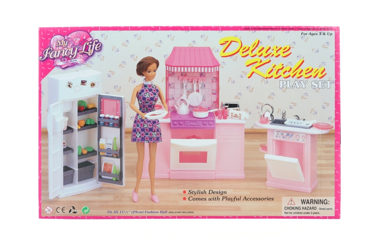 Dodiet bērniem iespēju spēlēt realistiskas mājas spēles ar GLORIE luksusa virtuves komplektu, kas piedāvā pilnu virtuves iekārtu ar cepeškrāsni, izlietni ar trauku mazgājamo mašīnu un ledusskapi ar pārtiku. Komplektā ietilpst arī bagātīgs trauku piederumu komplekts. Lelle nav iekļauta iepakojumā. Piemērots bērniem no 3 gadu vecuma.