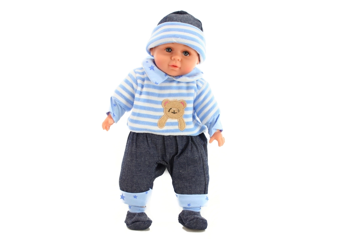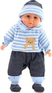Šis mīļais bēbītis puisītis iepriecinās ikvienu bērnu, kuram patīk rūpēties un spēlēties ģimenes lomspēlēs. Pateicoties mīkstajam ķermenītim, tas ir patīkams samīļošanai un ērti turams arī mazākās rociņās. Tas ir ģērbts krāsainā pidžamiņā ar lipekļa aizdari, tāpēc to var viegli novilkt un atkal uzvilkt.