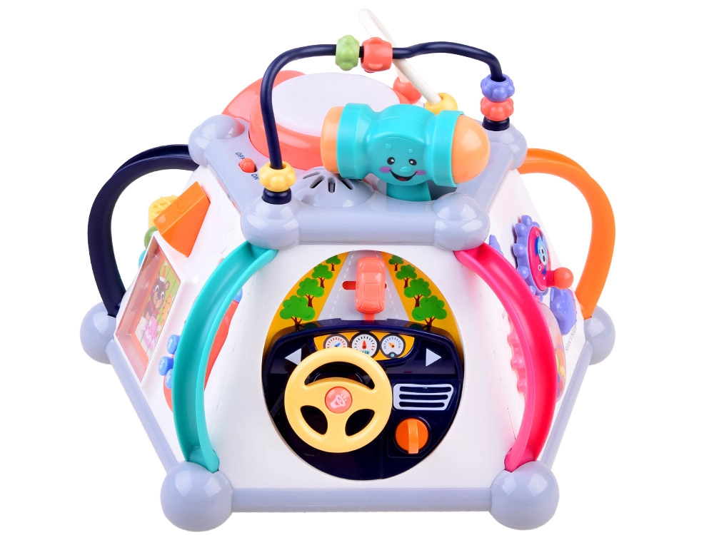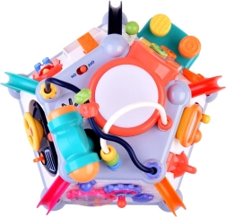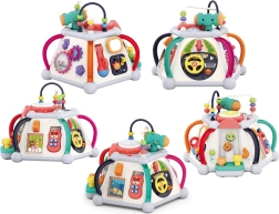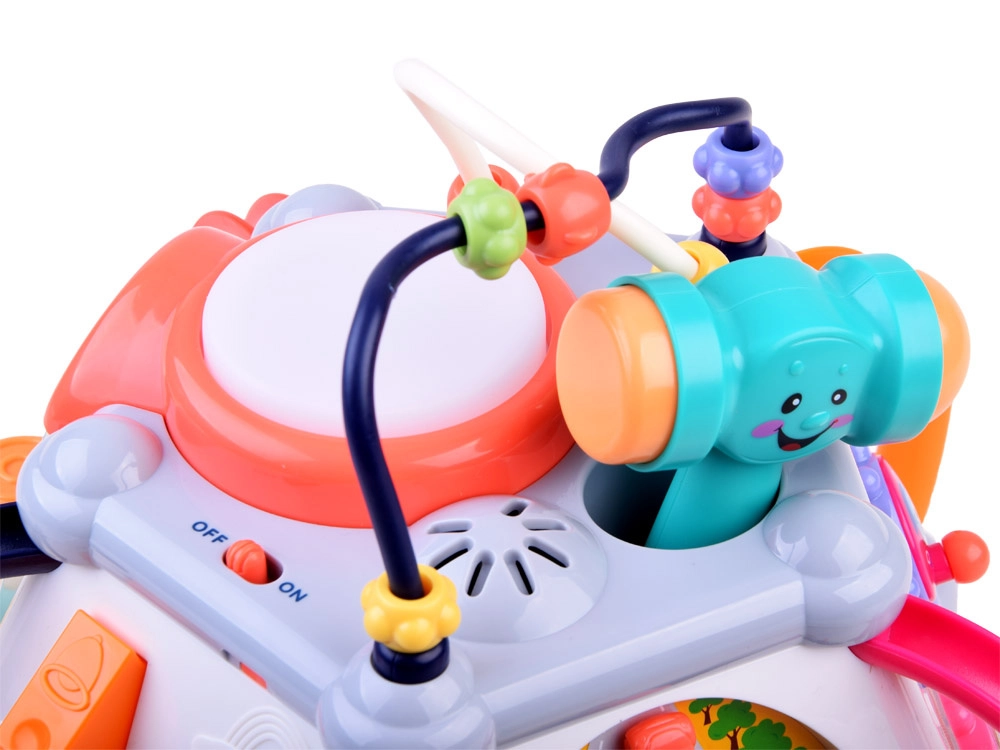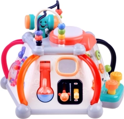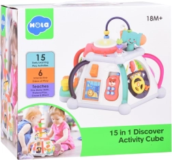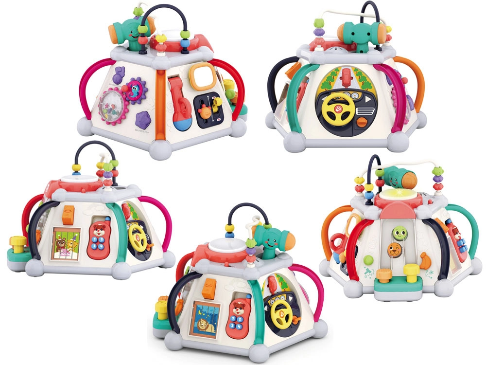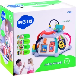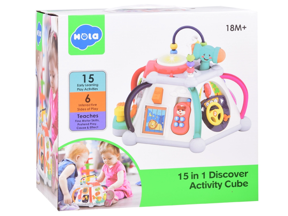 HOLA multikubs piedāvā bagātīgu aktivitāšu klāstu pašiem mazākajiem. Katra siena sniedz citu rotaļu veidu – no autiņa vadīšanas līdz zobratiem ar gaismām un melodijām, kā arī mikrofons ar apgaismotu “televizoru”. Augšējā puse slēpj krellīšu labirintus, spīdošu bungas tauri un vietu āmuriņa novietošanai. Viss ir veidots mazām bērnu rociņām un drošai atklāšanai.