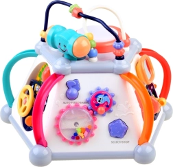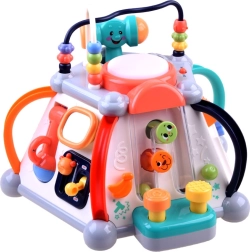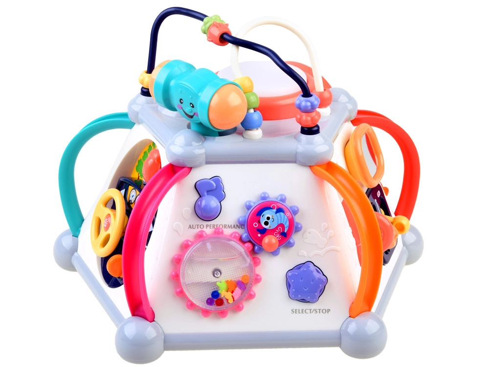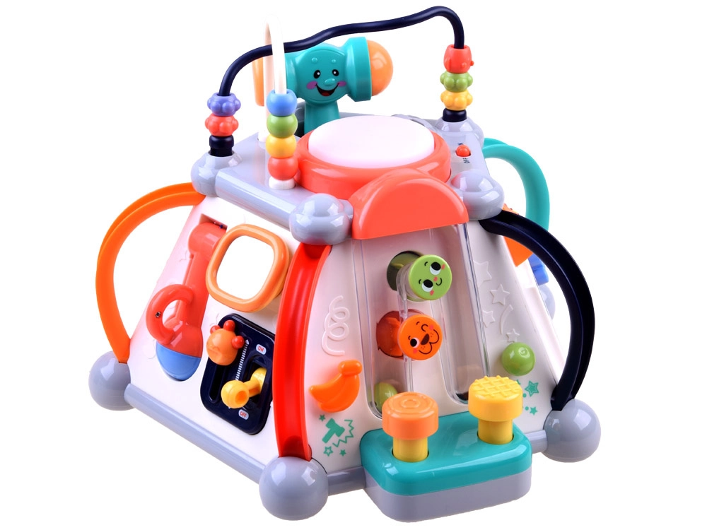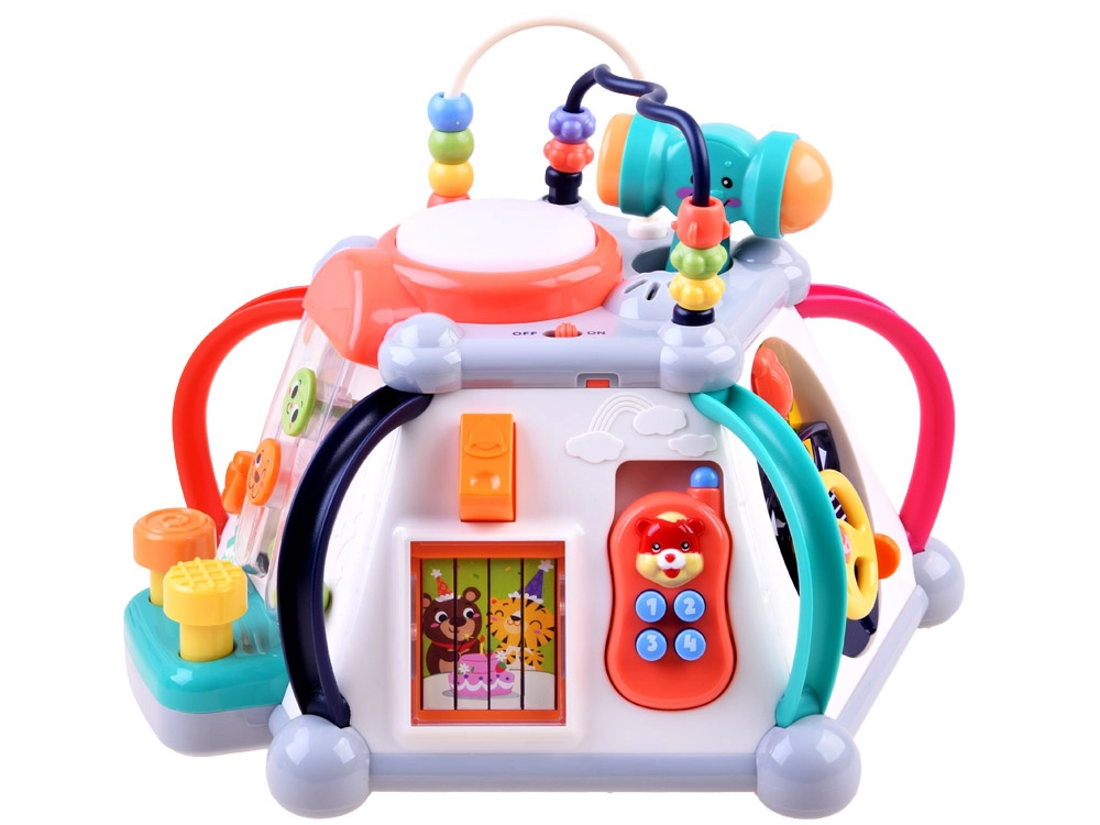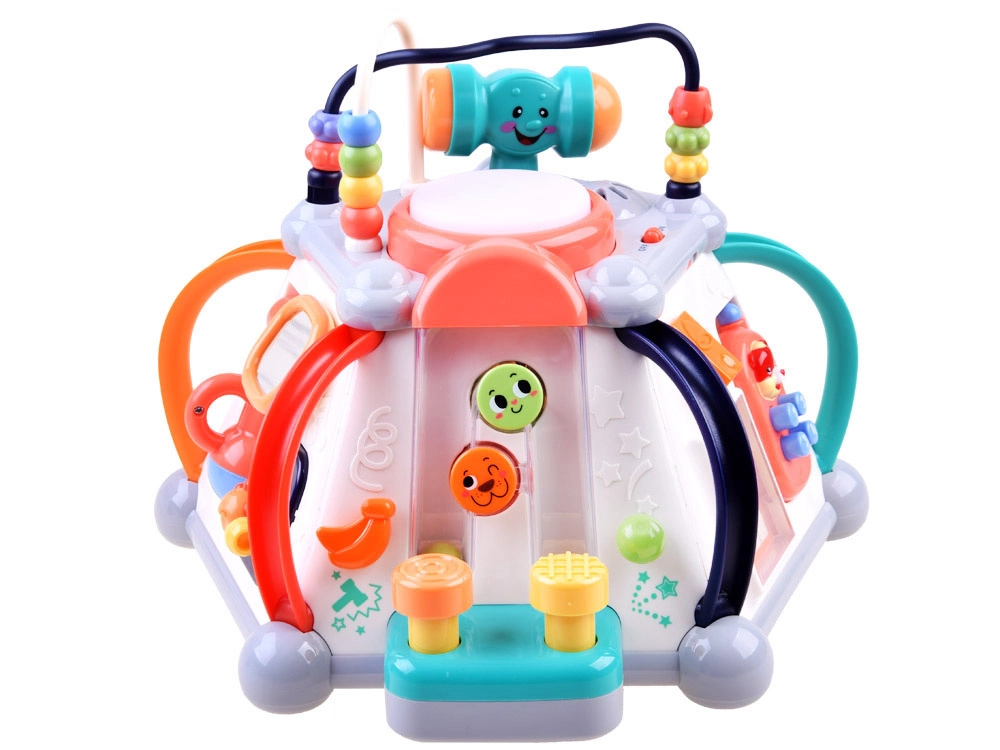 HOLA multikubs piedāvā bagātīgu aktivitāšu klāstu pašiem mazākajiem. Katra siena sniedz citu rotaļu veidu – no autiņa vadīšanas līdz zobratiem ar gaismām un melodijām, kā arī mikrofons ar apgaismotu “televizoru”. Augšējā puse slēpj krellīšu labirintus, spīdošu bungas tauri un vietu āmuriņa novietošanai. Viss ir veidots mazām bērnu rociņām un drošai atklāšanai.