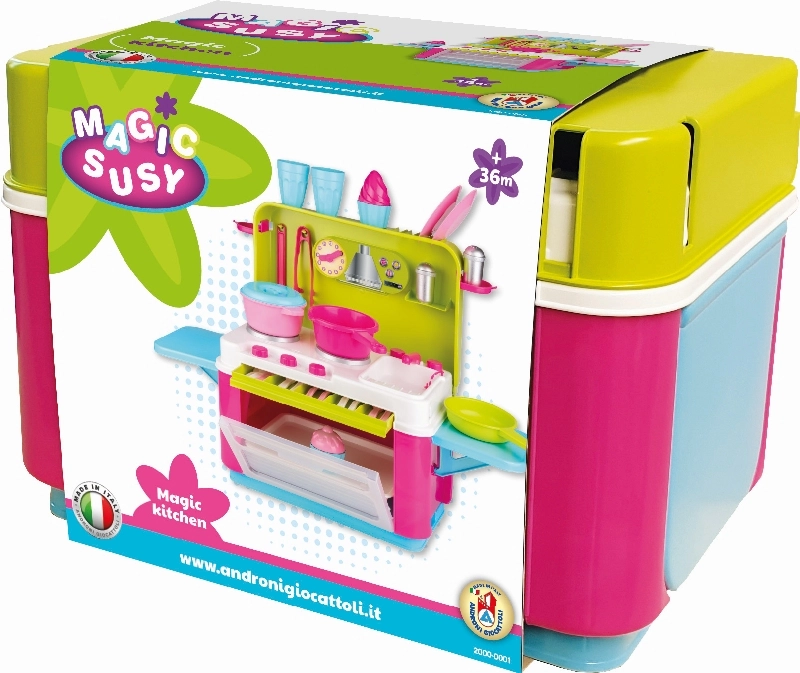 Kompakta ceļojumu virtuvīte no itāļu zīmola ANDRONI iepriecinās mazos pavārus no 3 gadu vecuma. Tā piedāvā 25 piederumus, kvalitatīvu itāļu izpildījumu un izturīgus, vienlaikus elastīgus plastmasas materiālus, kas piemēroti arī intensīvai spēlēšanai bērnudārzos.