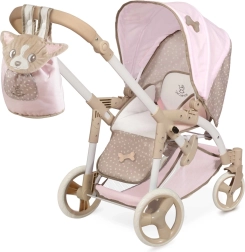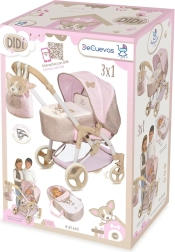 Stilīgi bērnu ratiņi lellēm 3 vienā no maigas kolekcijas ar kucēna DIDI motīvu iepriecinās katru mazo māmiņu. Tie piedāvā regulējamu kulbiņu un sporta sēdekli, pārnēsājamo somu ar mīlīgu izšuvumu, augstumā regulējamu rokturi līdz pat 80 cm un pagriežamus priekšējos ritenīšus ērtai vadīšanai. Praktiskais lielais grozs, trīs punktu josta un kvalitatīvs Spānijas izcelsmes metāla, plastmasas un tekstila apvienojums nodrošina drošu un aizraujošu rotaļu.