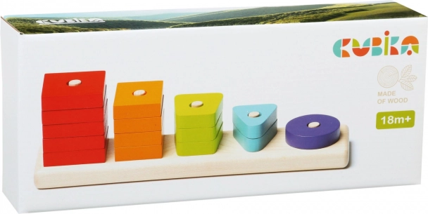 Koka puzle CUBIKA piedāvā aizraujošu veidu, kā bērnu iepazīstināt ar formām un krāsām. Uz izturīgas kvadrātveida pamatnes ar tapām bērni uzver 15 krāsainas perforētas detaļas – apļus, trīsstūrus, kvadrātus un citas vienkāršas ģeometriskas formas – un dabiskā veidā trenē acu–roku koordināciju un koncentrēšanos.