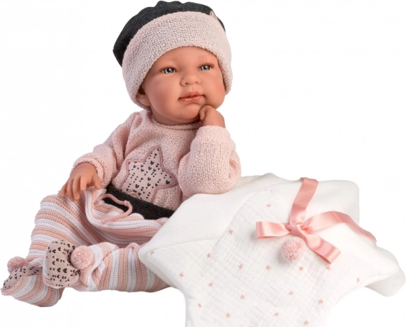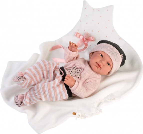 Llorens apģērbs lellītei New Born 43–44 cm, 3 daļu komplekts ar sedziņu