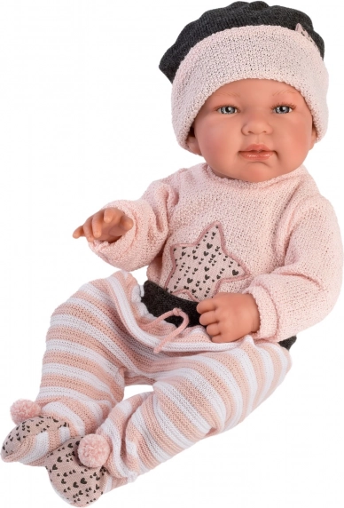 Stilīgs 3 daļu apģērba komplekts LLORENS New Born lellītei 43–44 cm izmērā iepriecinās ar realistisku izskatu un kvalitatīvu izpildījumu. Komplektā saskaņotas detaļas un dekoratīva sedziņa, ideāli piemērots pārtīšanai un lomu spēlēm. Ražots Spānijā, iepakots ar praktisku pakaramo. Kvalitatīvi materiāli, precīza šūšana un nevainojams piegriezums standarta izmēra lellēm.