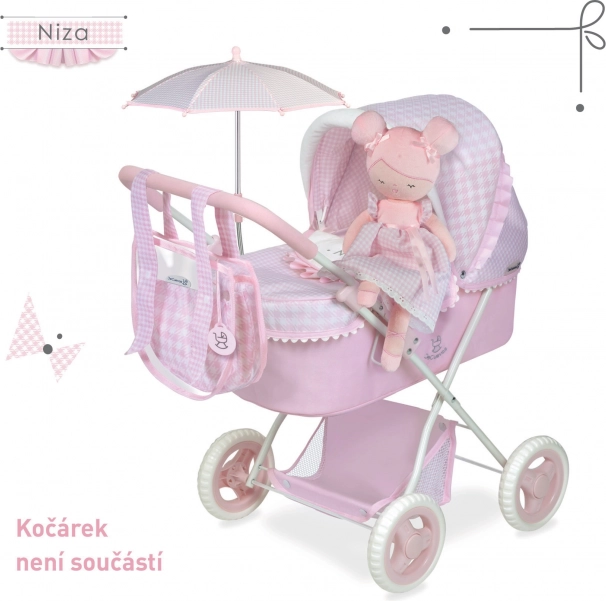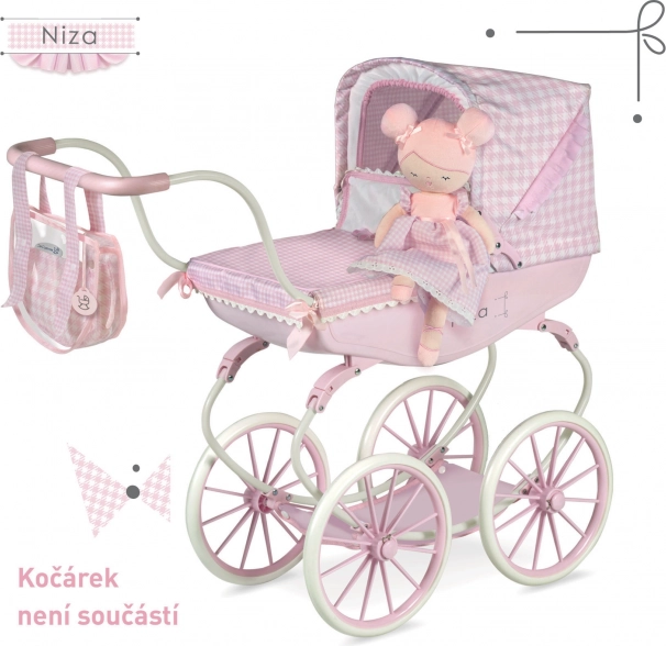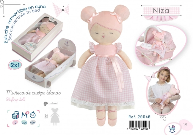 Mīlīgā pūkainā lelle Niza maigi rozā tonī iepriecinās ikvienu mazo balerīnu. Tā ir ļoti viegla, maiga pieskārienam un ideāli piemērota mīļošanai un līdzi ņemšanai ceļā. Komplektā ir gudra 2-in-1 kastīte, kas pārvēršas par šūpulīti, lai bērns varētu uzreiz sākt rotaļāties. Lelle ir mazgājama 30 °C temperatūrā un izceļas ar kvalitatīvu izpildījumu un smalku spāņu dizainu.