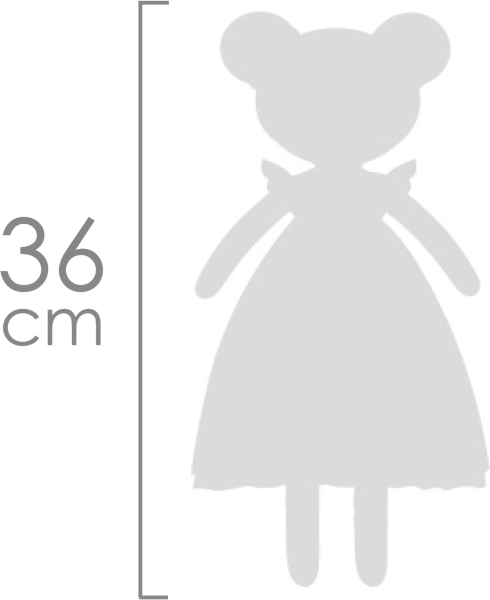 Lelles augstums ir 36 cm, tā ir īpaši viegla un patīkama turēt rokās un mīļot. Kopšana ir vienkārša – pietiek ar roku mazgāšanu 30 °C temperatūrā. Kvalitatīvu materiālu un laikmetīga spāņu dizaina apvienojums padara to par ideālu dāvanu mazām dāmām.
