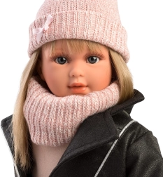 Carla valkā modernu komplektu: melnu “biker” mētelīti no mākslīgās ādas, tumšus svārkus ar lapsu apdruku, adītu rozā cepuri ar bumbuļu, šalli-komīnu, zeķes un kurpītes. Neizpaliek arī maza adīta somiņa. Pateicoties ES drošības standartiem, rotaļas ar lelli ir maksimāli drošas. Komplektā dekoratīva dāvanu kaste – ideāli dāvanai.