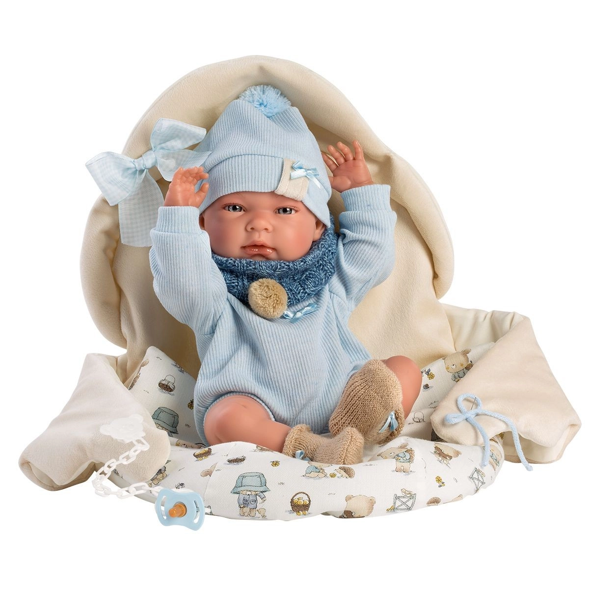 Iepakojumā ietilpst stilīgs apģērbs, tostarp bodijs, cepurīte, zeķītes, šallīte un guļammaiss, kā arī dekoratīva knupīša imitācija. Katra lelle ir rūpīgi iepakota dekoratīvā kartona kastē, lai katra atvēršana būtu piedzīvojums.