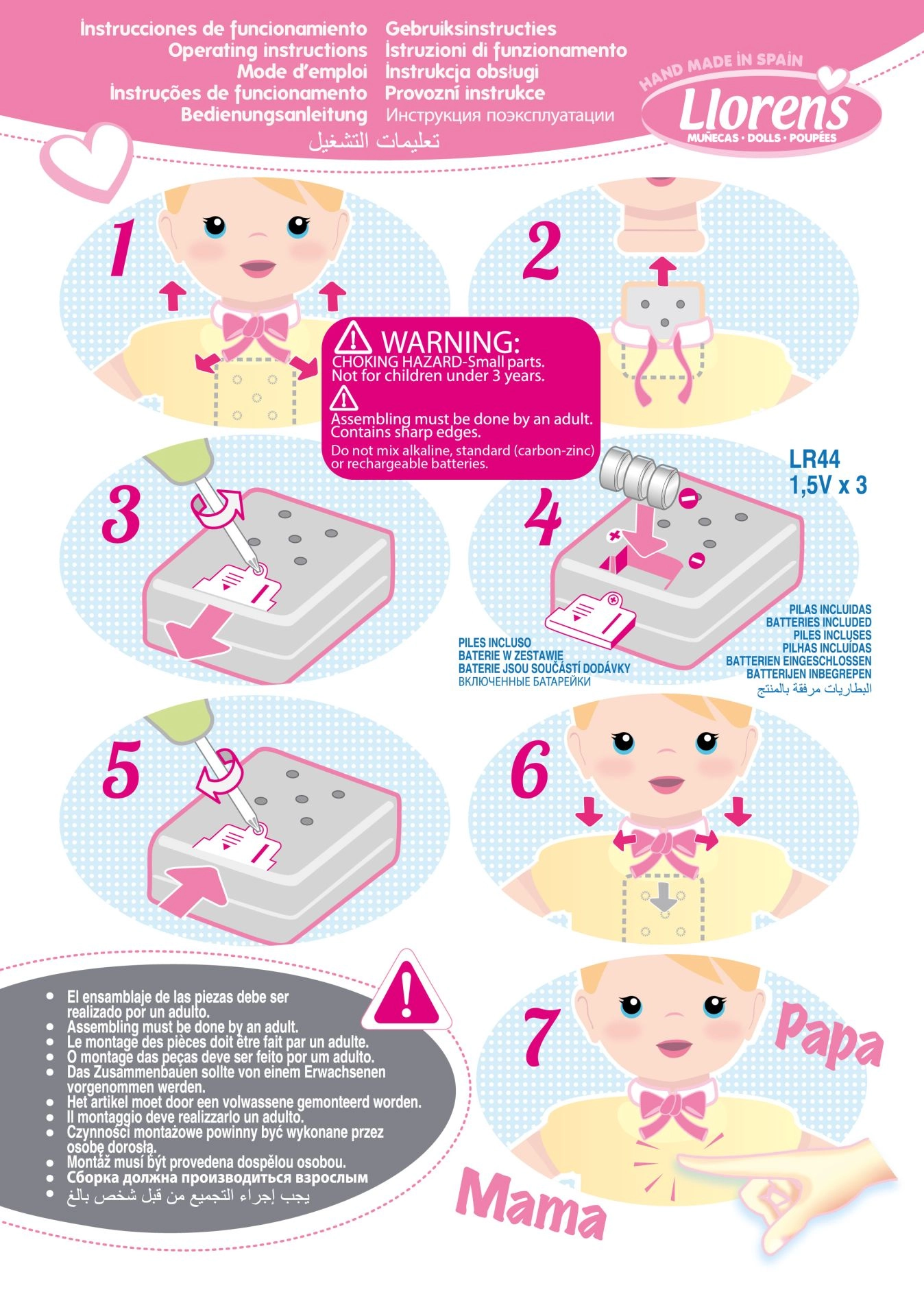 Atklājiet realistisku lelli no zīmola LLorens ar skaņas efektiem un mīkstu auduma ķermeni, ideāli piemērotu vecāku lomspēlēm un iztēles attīstīšanai. Nospiežot krūškurvi, lelle saka “mamma”, “tētis” un izdod autentisku raudāšanu. Lelle ir pozējama, var sēdēt un ir roku darbs, izgatavota Spānijā. Komplektā ir iekļauts knupītis kā aksesuārs un baterijas tūlītējai spēlei.