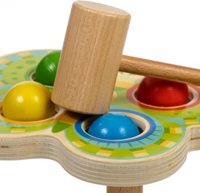 Aizraujoša koka dauzāmā rotaļlieta tauriņa formā ar četrām krāsainām bumbiņām attīsta sīko motoriku, roku–acu koordināciju un koncentrēšanos. Bērni ar āmuriņu iedauza bumbiņas atbilstošās krāsas atverēs – droša, izturīga un vizuāli saistoša rotaļlieta no dabīga koka.