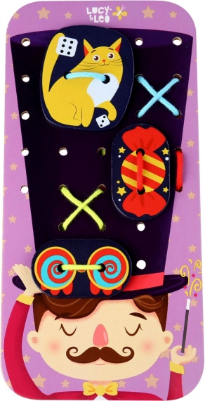 Šis jautrais vīšanas un veršanas komplekts ar burvju mākslinieka motīvu aicina bērnus fantāzijas pasaulē. Pie lielās pamatnes ar burvju mākslinieka galvu un cepuri, izmantojot aukliņas, var piestiprināt krāsainus aksesuārus – no trusīša un monētām līdz noslēpumainām kārtīm. Spēlējoties bērni trenē roku–acu koordināciju, pacietību un radošumu.