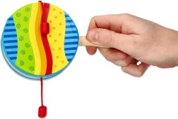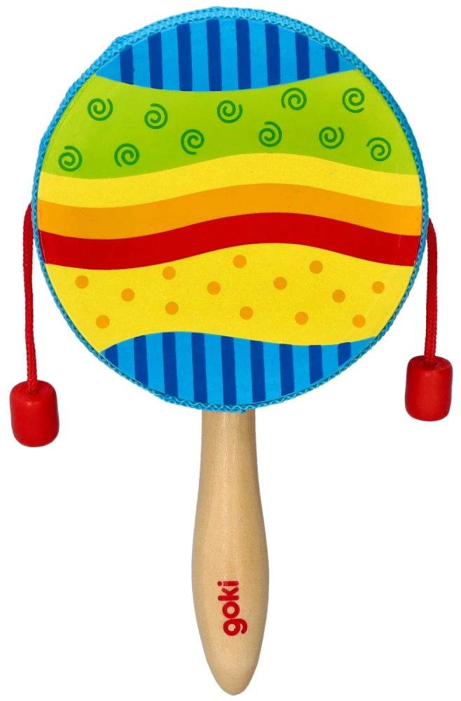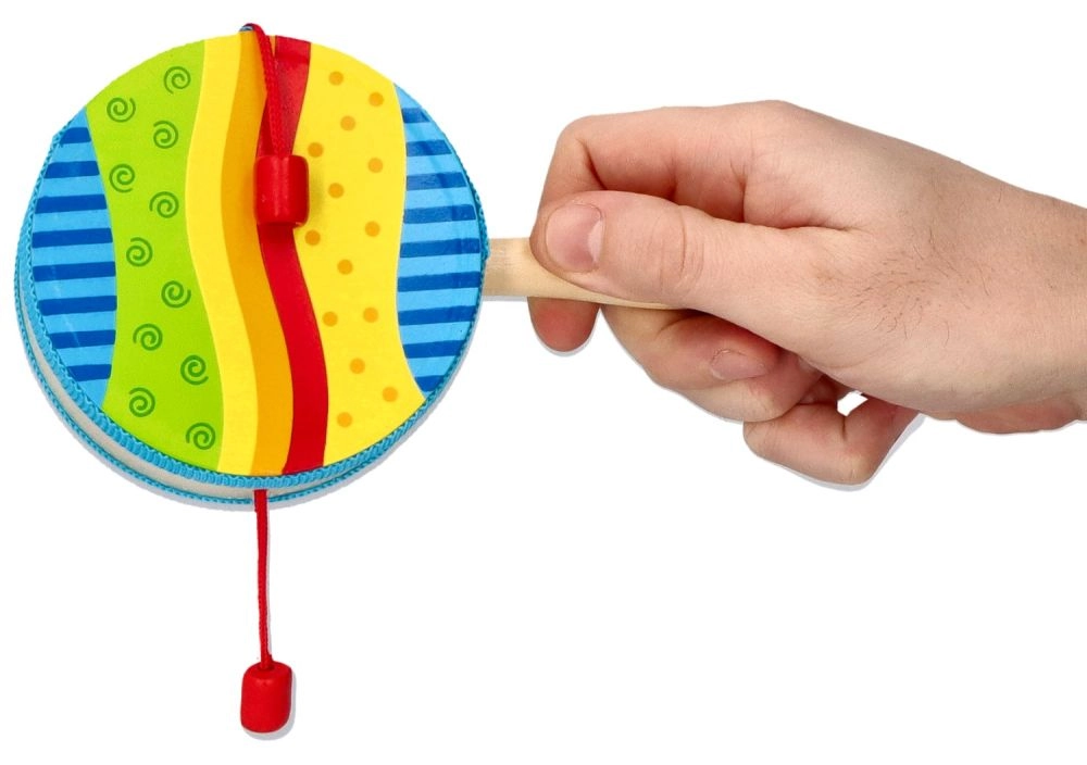 Iekustini ritmu ar bērnu rokas bungām GOKI! Šis košais mūzikas instruments no dabīga koka skan, griežot rokturi, kad pērlītes uz aukliņām sit pret membrānu bungu vietā. Lieliski piemērotas pirmajai muzicēšanai, ritma un koordinācijas attīstībai, ideālas bērnudārzam un mājām. Droši materiāli, viegla lietošana un jautra skaņas atbilde veicina bērnu prieku par mūziku.