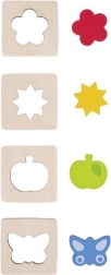 Taustes spēle Atpazīsti formas rāmī ir izgatavota no kvalitatīvas dabīgas koksnes. Komplektā ietilpst 16 rāmīši ar izmēriem 5,9 x 5,9 cm un 16 krāsainas izgrieztas formas, kas stimulē bērnu tausti un maņu uztveri. Vienkārši saliekot un meklējot formas maisiņā, mācīšanās kļūst aizraujoša. Spēli var spēlēt dažādos veidos, tostarp meklējot formas tikai ar tausti, kas piešķir tai īpašu šarmu.