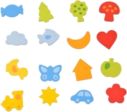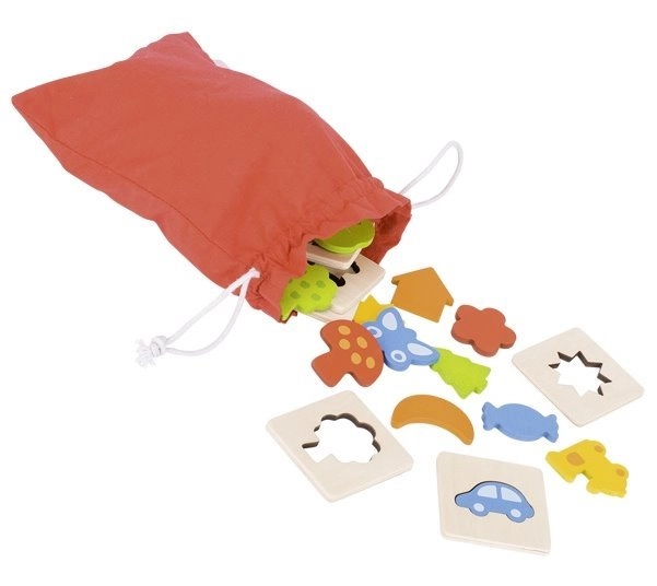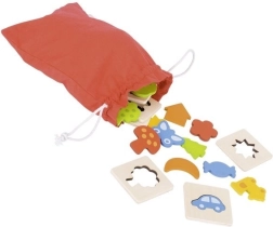 Spēle palīdz attīstīt bērnu smalkās motoriskās prasmes, izmantojot formu taustes atpazīšanu.
