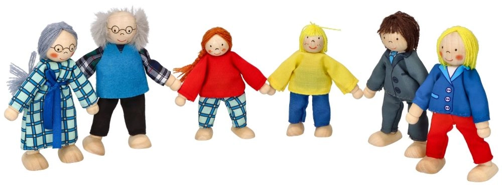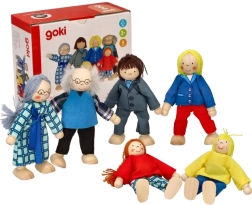 Atklājiet ģimenes rotaļu burvību ar klasisko Goki leļļu komplektu. Sešas rūpīgi izgatavotas figūriņas – vecmāmiņa, vectēvs, mamma, tētis, meita un dēls – veicina iztēles attīstību, komunikācijas prasmes un sociālo mācīšanos. Pateicoties lokanajām ekstremitātēm, tās viegli ieņem dažādas pozas un lieliski pielāgojas jebkurai ainai bērnu leļļu mājiņā.
