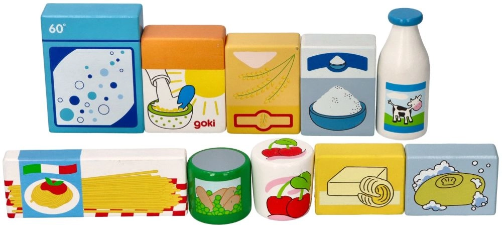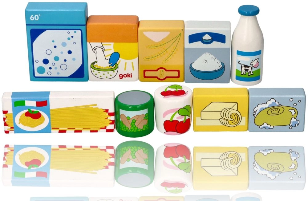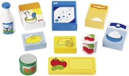 Krāsainie koka gabali atgādina ikdienas pārtikas produktus (piens, makaroni, pārslas u.c.) un motivē bērnus dabiski mācīties spēles laikā.