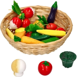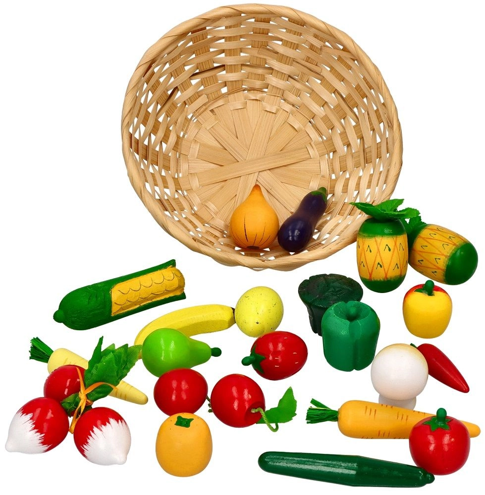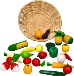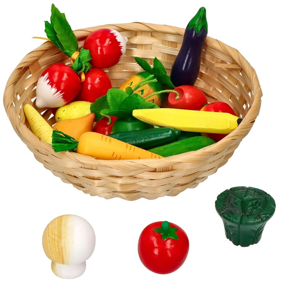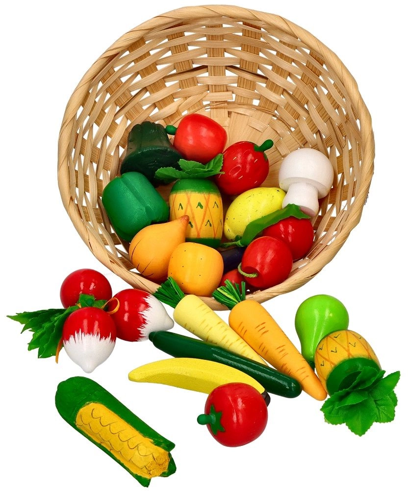 Šis košais koka pārtikas komplekts groziņā ir lielisks papildinājums bērnu virtuvei un veikala rotaļām. Reālistiski krāsotie gabali, piemēram, burkāns, kukurūza, tomāts vai banāns, mudina bērnus pētīt, šķirot un nosaukt. Izturīgs koks nodrošina ilgu kalpošanas laiku un drošu rotaļāšanos.