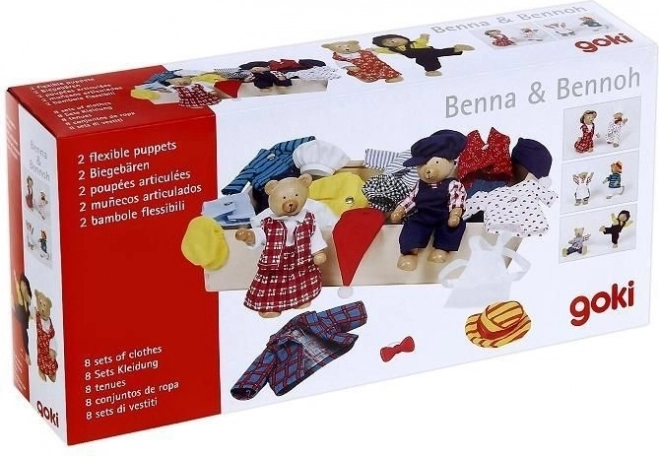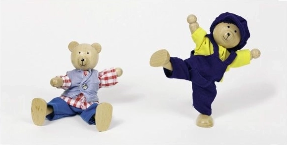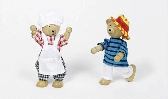 Šis mīlīgais komplekts piedāvā pāri lāčuku ar plašu apģērbu un aksesuāru izvēli, sakārtotu pārskatāmā koka kastītē. Bērni var salikt galviņas, ķermeņus un kājiņas, veidot jautras kombinācijas un mācīties krāsas un noskaņas.