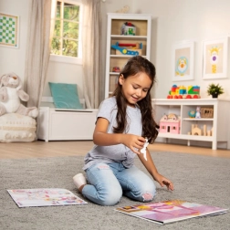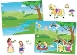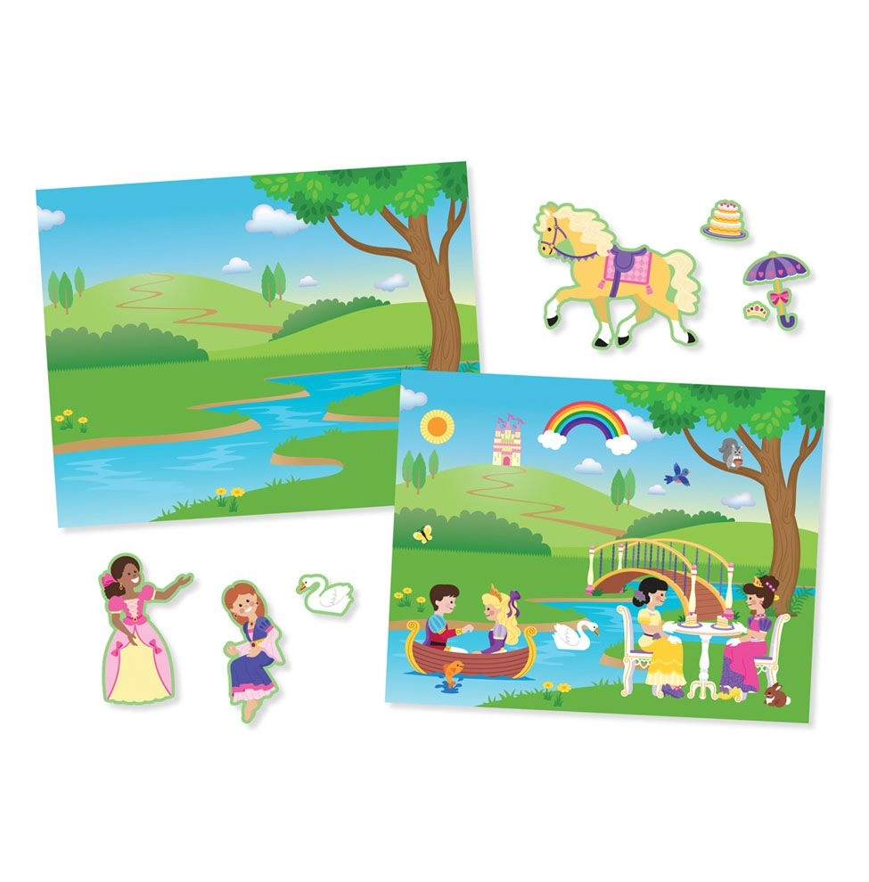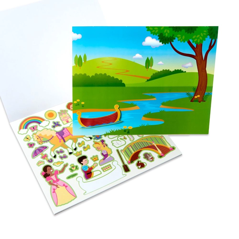 Šis radošais komplekts piedāvā apburošas ainas no princešu pasaules, tronīšanas zālēm un karaļnamu istabām. Atkārtoti izmantojamās uzlīmes var viegli pārvietot, kombinēt un kārtot slāņos, tāpēc katra spēle atnes jaunu stāstu. Ideāli piemērots mājās, ceļā un kā dāvana mazajiem pasaku mīļotājiem.