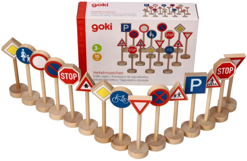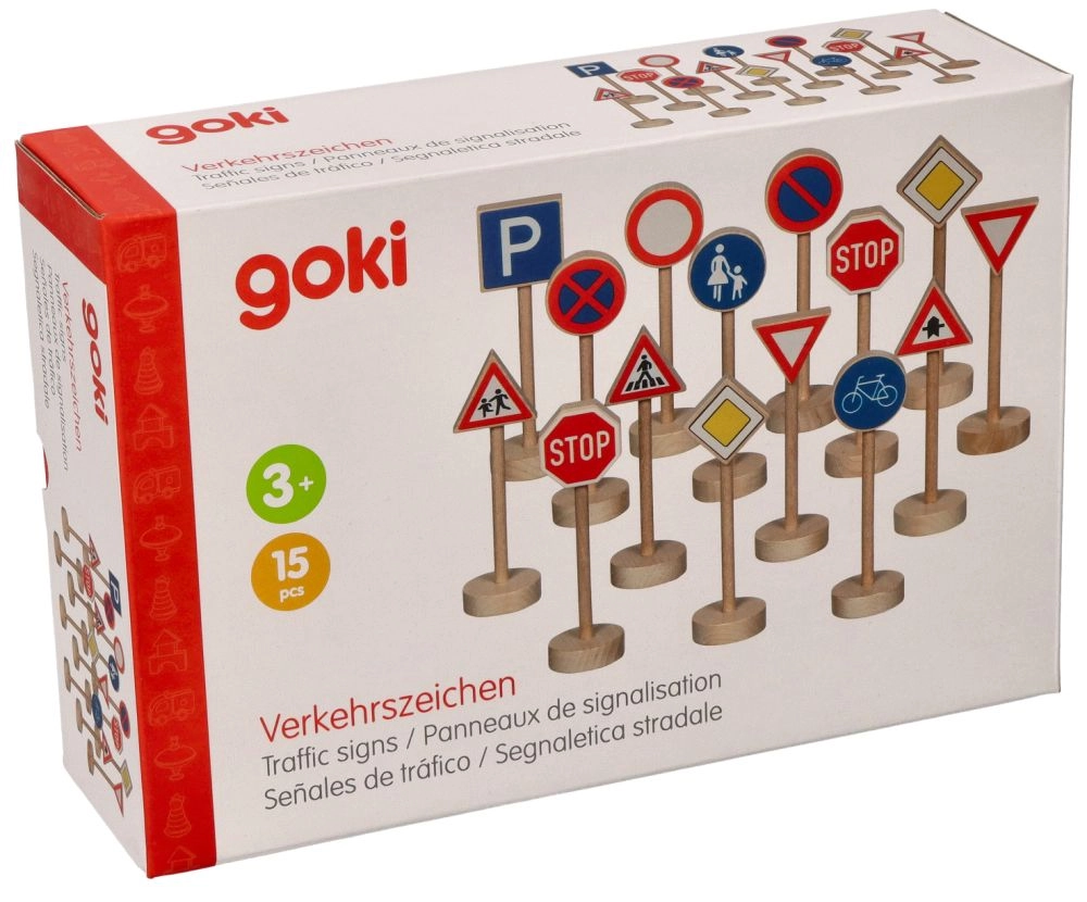 Atklājiet jautru un izglītojošu Goki koka satiksmes zīmju komplektu, kas bērniem palīdz rotaļīgā veidā apgūt ceļu satiksmes noteikumus. Izturīgās zīmes no masīvkoka ar nekaitīgām krāsām ir ideāli piemērotas spēlēm ar mašīnītēm un uz auto trases. Tās ir ērti satveramas, 11 cm augstas, un iepakojumā ir 15 gabali reālistisku satiksmes situāciju veidošanai.