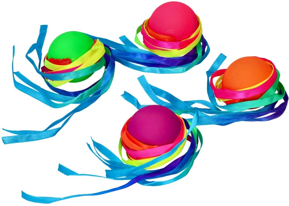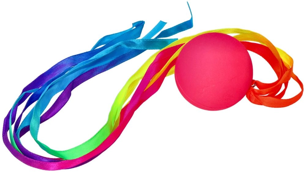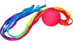Dažādu krāsu lentītes, kas piestiprinātas pie bumbiņas, piešķir katram metienam dinamiku un kustību daudzveidību.