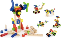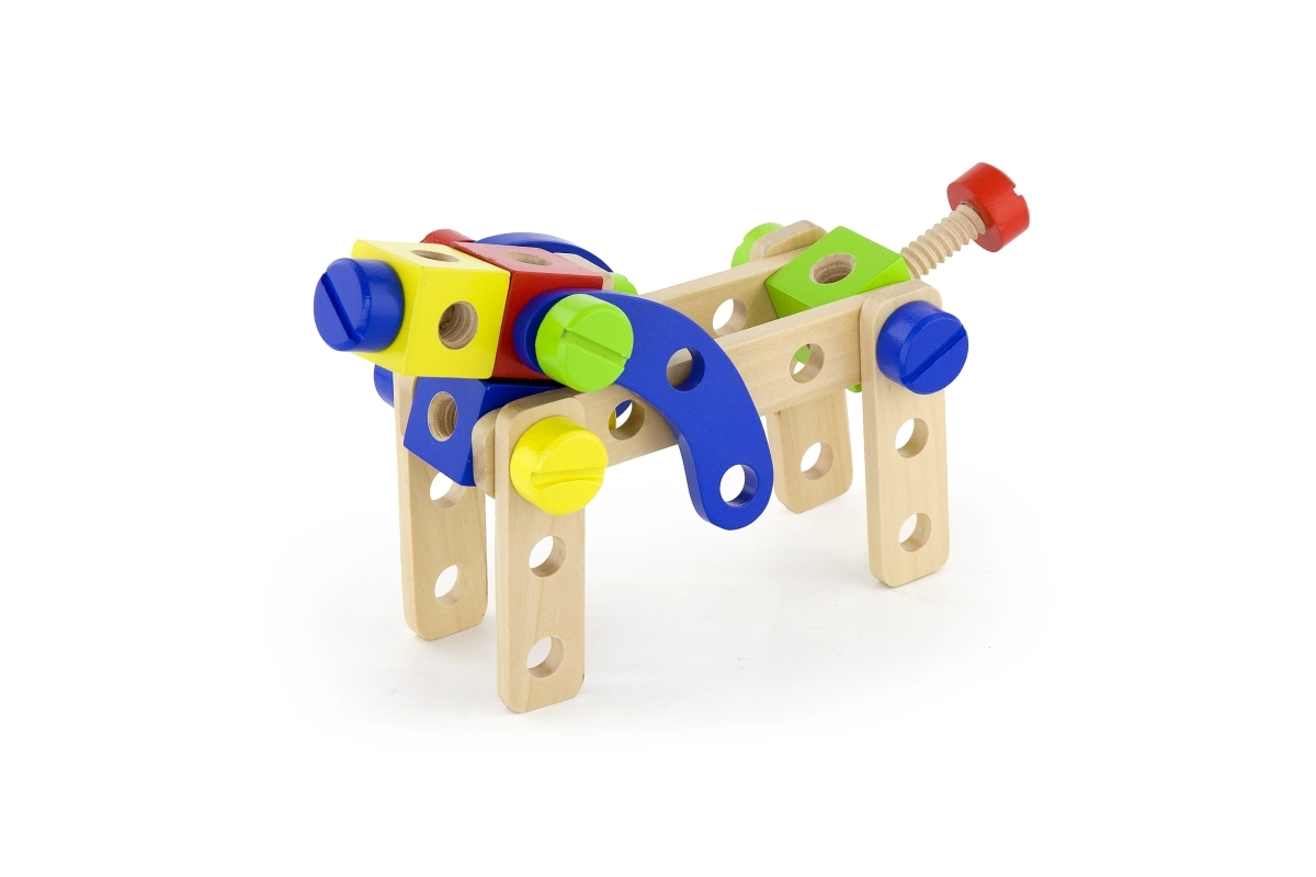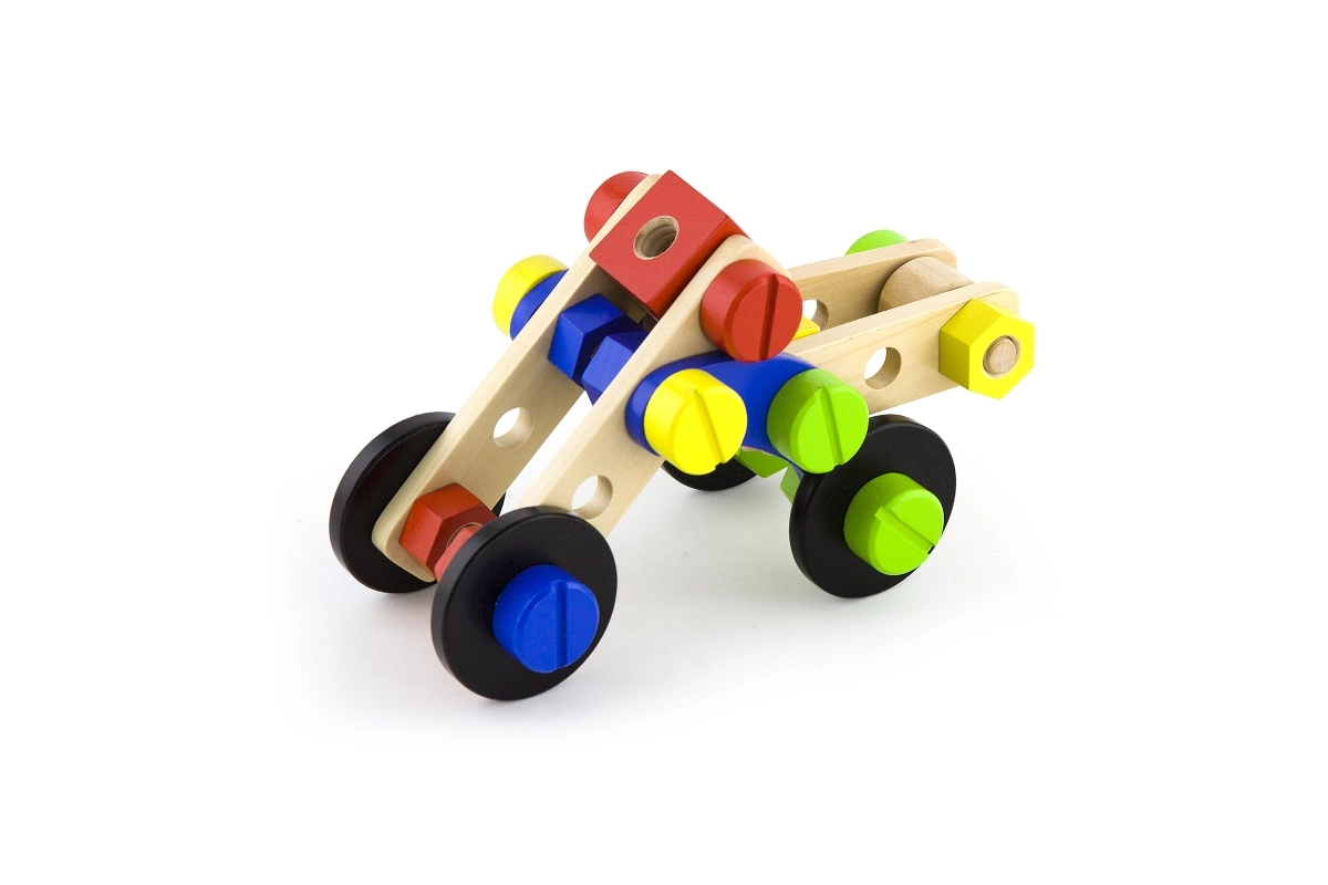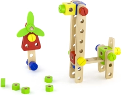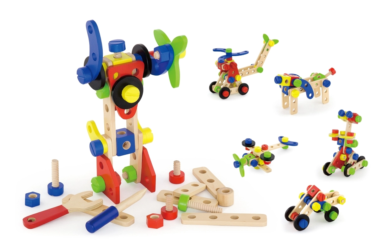 Šis universālais koka konstruktors piedāvā bērniem bezgalīgas būvēšanas iespējas – no ratiņiem un dzīvniekiem līdz helikopteram vai robotam. Pateicoties izturīgajām koka detaļām, skrūvēm un savienojumiem, bērni trenē acu–roku koordināciju un apgūst konstruktīvās domāšanas pamatus.