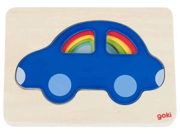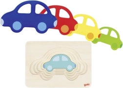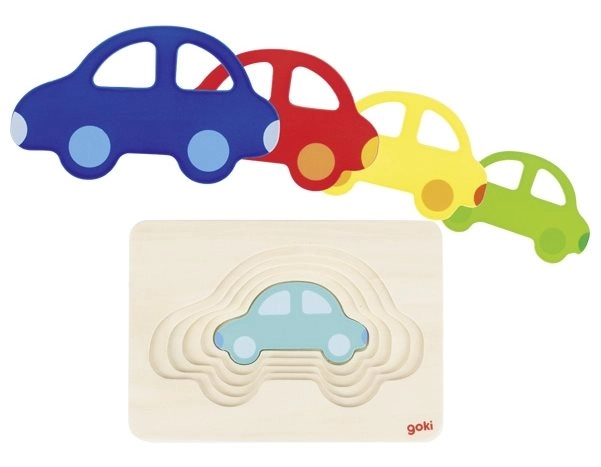 Atklājiet jautru un izglītojošu rotaļlietu pašiem mazākajiem: daudzslāņu koka ieliktņu puzli auto formā no GOKI. Bērni rotaļājoties trenē sīko motoriku, krāsu atpazīšanu un izmēru izpratni. Izturīgā pamatplate ar malu nodrošina stabilu ielikšanu, un katra mašīnīte precīzi ieguļ savā slānī.