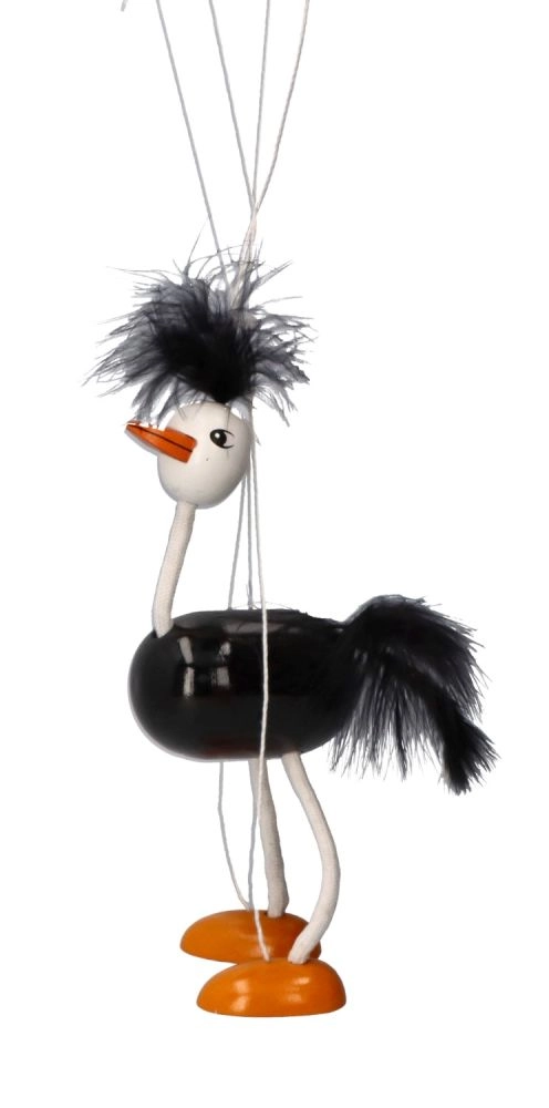 Ieniriet fantāzijas un piedzīvojumu pasaulē ar šo brīnišķīgo koka marioneti strausu. Šis roku darbs piedāvā vieglumu un kustīgumu pateicoties kvalitatīvai konstrukcijai un vadības auklām. Lieliski piemērota teātra izrādēm, lomu spēlēm vai kā dekoratīvs priekšmets bērnu istabā.