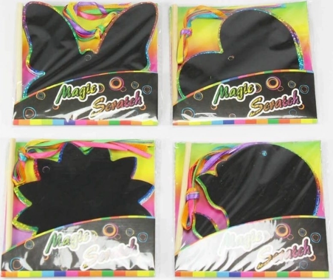 Vienkārša darbība, iespaidīgs rezultāts – noskrāpējiet iepriekš iespiestās līnijas, un zem melnās kārtas parādīsies varavīksnes krāsas. Pabeigtos attēlus, pateicoties krāsainām lentītēm, var uzreiz piekārt un izrotāt bērnu istabu. Ideāli piemērots veidošanai mājās, skolā un pulciņos.