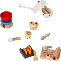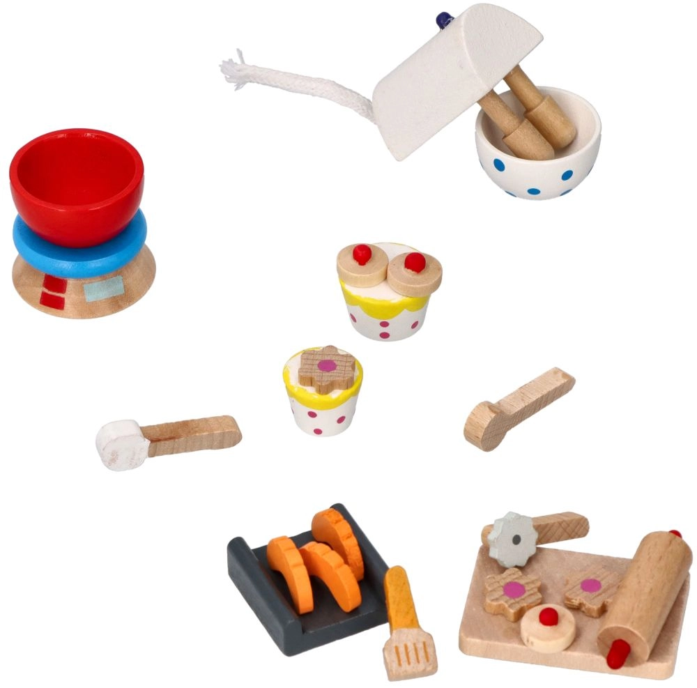 Šis skaisti krāsainais koka cepšanas komplekts kļūs par iemīļotu papildinājumu jebkurā bērnu istabā. Bērni var radīt veselu klāstu ceptu gardumu, pateicoties pilnam piederumu komplektam, ko šis komplekts piedāvā.