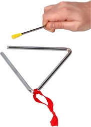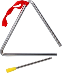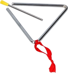 Lielais metāla trijstūris ir lieliska izvēle pirmajiem soļiem ritmisko instrumentu pasaulē. Hromētais tērauds nodrošina tīru un ilgu atbalsi, bet praktiskā lentīte ļauj droši turēt vai iekārt. Trijstūris piemērots bērniem no 3 gadiem, mūzikas pulciņiem, bērnudārziem un sākumskolām.