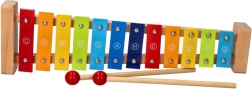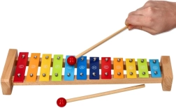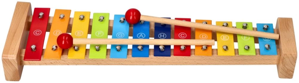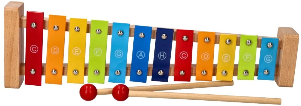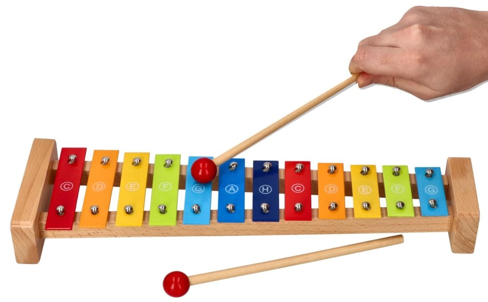 Izturīgs koka rāmis un 12 metāla taustiņi nodrošina patīkamu skanējumu un ilgu rotaļlietas mūžu.
