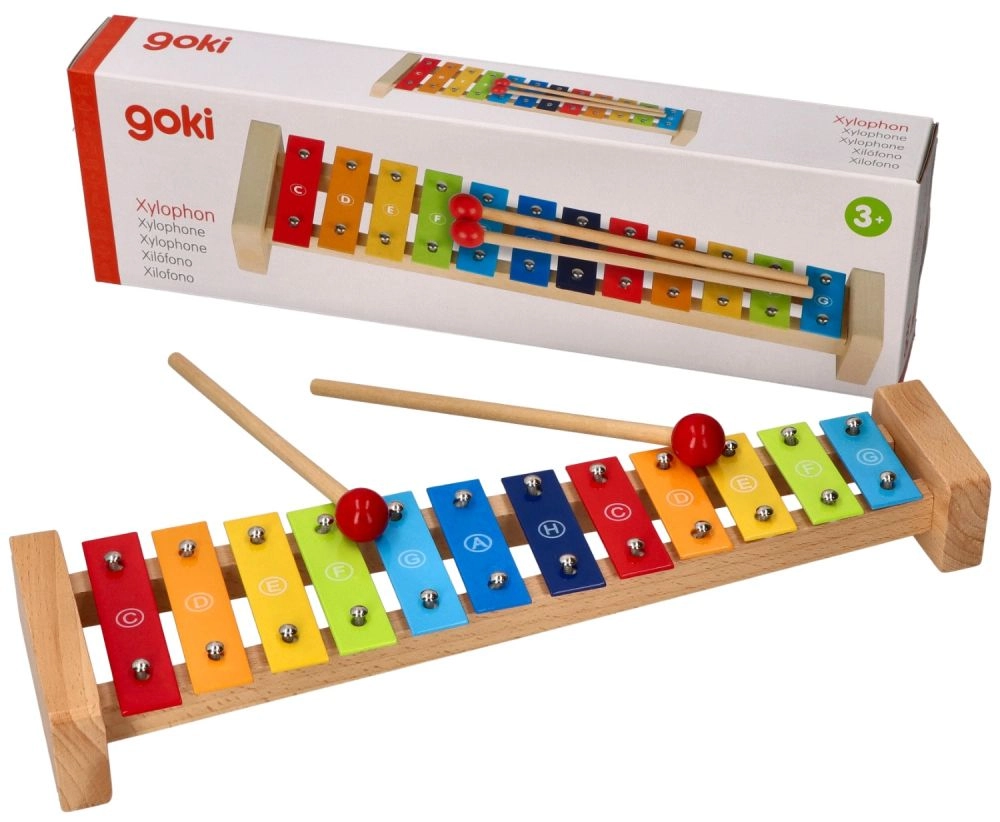 Krāsainais Goki ksilofons ar dziesmu grāmatiņu Varavīksne ir lieliska izvēle pirmajai iepazīšanai ar mūziku. Robustā koka konstrukcija kombinācijā ar metāla taustiņiem nodrošina patīkamu skanējumu un ilgmūžību. Pateicoties notu nosaukumiem uz taustiņiem un krāsu vadlīnijām dziesmu grāmatiņā, bērni viegli sapratīs saikni starp krāsām, toņiem un vienkāršām melodijām.