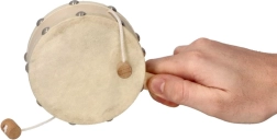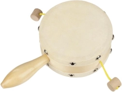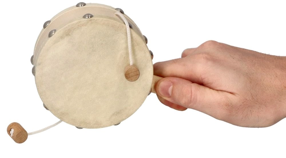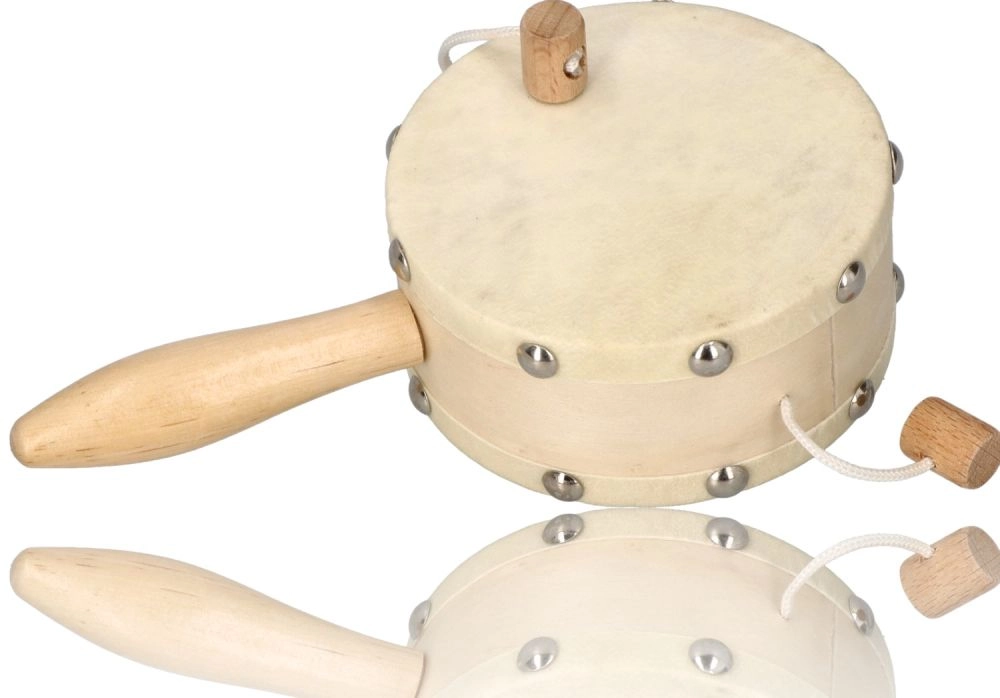 Piedāvājam dabīga koka bungas ar krellītēm, ideāli piemērotas mazajiem mūziķiem no trīs gadu vecuma. Pateicoties koka rokturim un ādas bungas virsmai, šis instruments ir ne tikai estētisks, bet arī funkcionāls.