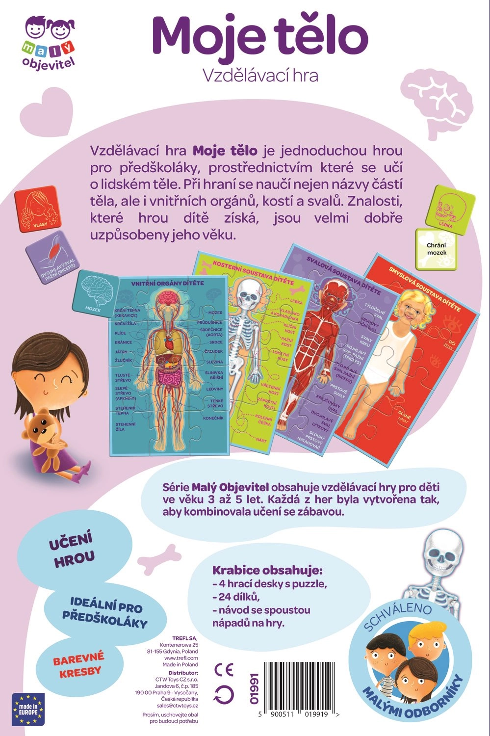 Šī spēle ir ideāli piemērota bērniem no trīs gadu vecuma, kuri vēlas atklāt cilvēka ķermeņa noslēpumus. Komplektā iekļauts:
