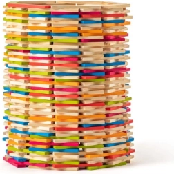 Šajā komplektā ir 200 kvalitatīvu koka plāksnīšu ar izmēriem 10 × 1,8 × 0,6 cm, kas paredzētas vieglai salikšanai torņos, tiltos, dzīvniekos un fantāzijas būvēs. Gluda virsma un precīzi izmēri nodrošina stabilitāti un ērtu satveršanu mazām bērnu rokām.