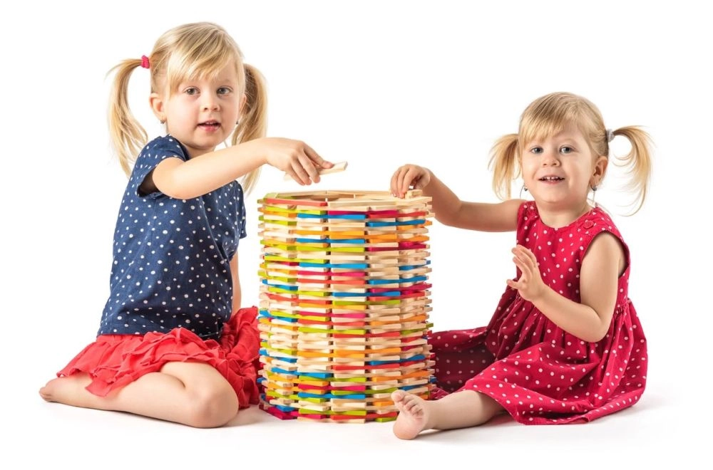 Spēle ar koku veicina sīko motoriku, koordināciju un telpisko domāšanu. Ideāli piemērota gan patstāvīgai, gan kopīgai radīšanai.