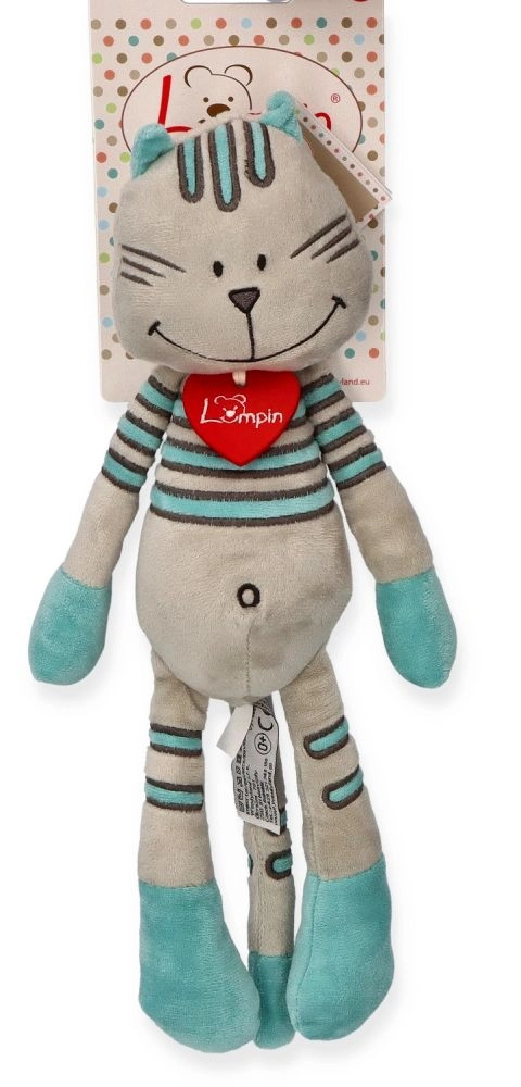 Pūkainais runcis Lewis ir ideāls biedrs mīļošanai un miegam. Tā mīkstais un maigs materiāls nodrošina komfortu, bet tirkīza svītras un filca sirsniņa piešķir oriģinālu izskatu, ko bērni iemīlēs.