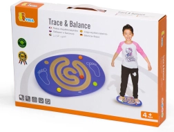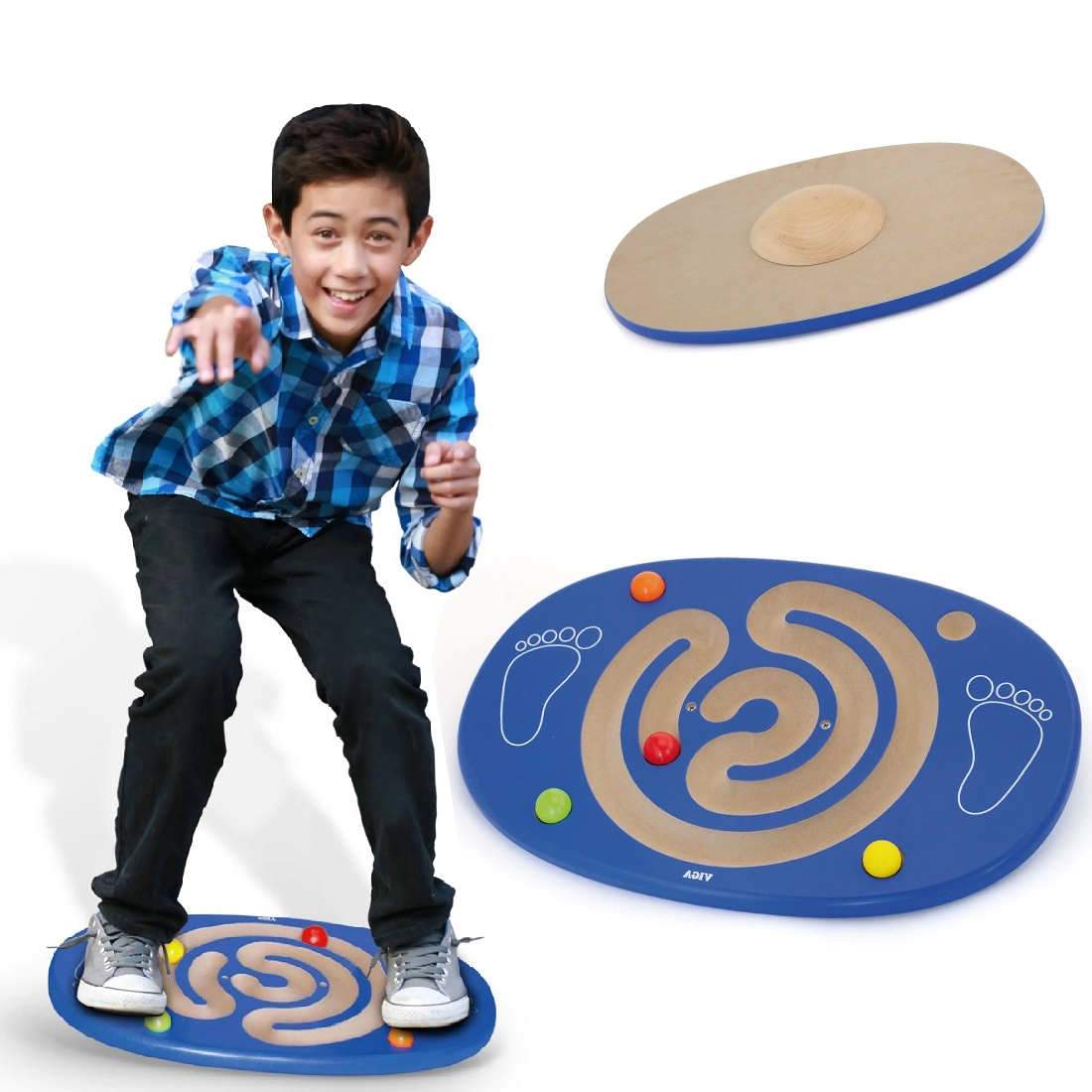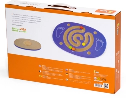 Līdzsvara dēlis ar labirintu no VIGA pārvērš līdzsvara treniņu aizraujošā spēlē. Bērns stāv uz neslīdošas virsmas ar pēdu novietojuma atzīmēm un, slīpinot dēli, virza krāsainās bumbiņas pa iefrēzētām trasēm. Šis interaktīvais rīks attīsta stabilitāti, acu–roku koordināciju un stiprina dziļo stabilizācijas sistēmu.
