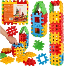Šis konstruktors ar 24 krāsainiem elementiem, kuru izmērs ir aptuveni 10,5 × 10,5 cm, ir ideāli piemērots pirmajām būvēšanas spēlēm. Lielie un viegli satveramie kluči droši savienojas, labi tur formu un tos var atkārtoti izjaukt un salikt bez bojājumiem. Bērni gūs daudz prieka un vienlaikus stiprinās roku–acu koordināciju un loģisko domāšanu.