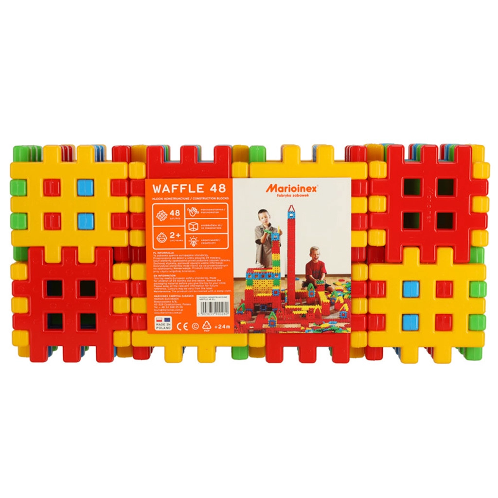 Atklājiet veidošanas prieku ar lielo komplektu no 48 krāsainiem vafelveida klučiem aptuveni 10,5 × 10,5 cm izmērā. Pateicoties lielām, drošām un izturīgām detaļām, tās viegli savienojas, lieliski ieguļ bērna plaukstā un veicina kreativitāti, motoriku un telpisko iztēli bērniem no 2 gadu vecuma. Vairāk detaļu nozīmē lielākas būves un vairāk jautrības brāļiem, māsām un draugiem.